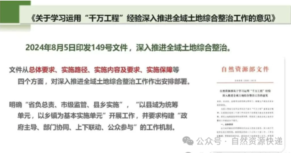 5. 生态修复篇:既要“绿水青山”,也要“金山银山” - 农用地整治:“小田并大田”“多田套合”(永久基本农田+高标准农田)、土壤改良技术; - 建设用地修复:废弃矿山复垦(海南新盈镇案例)、旧村改造(陕西仓上镇集中安置); - 生态产品转化:湿地公园建设、田园景观打造(上海泖港镇案例)、碳汇交易路径。 6. 共富落地篇:让农民、集体、企业都受益 - 权益保障:宅基地退出补偿、土地流转收益分配、农民就业支持(如浙江“强村公司”模式); - 产业导入:乡村民宿、农产品加工、研学旅游等“土地整治+”业态布局; - 成效评估:“五本账”测算(资源账、资金账、民生账、生态账、产业账)。