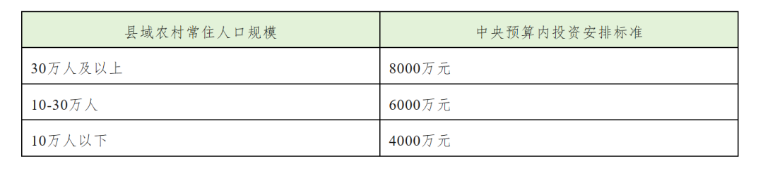 1、支持方式 本专项中央预算内投资采用直接投资、投资补助两种方式。 2、资金支持标准(清晰对照表) 补充限制: 每个县乡村产业配套设施投资不超过3000万元;每个行政村村庄基础设施投资不超过300万元;优先支持集聚提升类村庄,其中东北、西北及原中央苏区、革命老区支持1000人以上行政村,华北、西南支持1500人以上行政村,华东、中南支持2000人以上行政村。