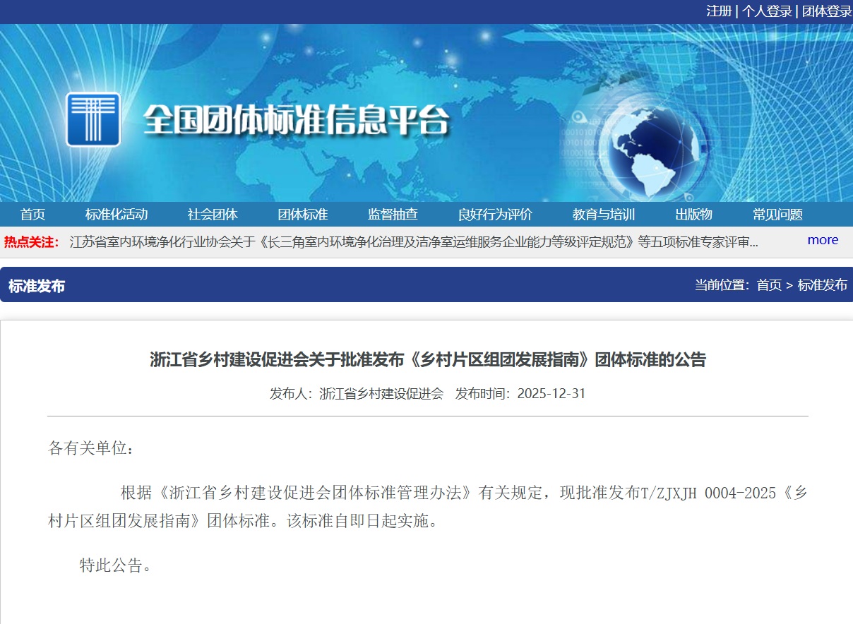 近日,全国首部关于乡村片区组团发展的团体标准《乡村片区组团发展指南》(以下简称《指南》)获批发布,现可在全国团体标准信息平台网站查询与下载。