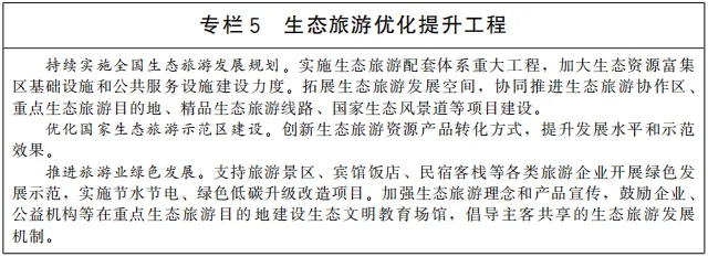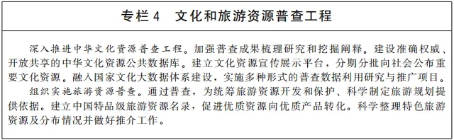 在城市群规划建设中,立足满足同城化、一体化旅游休闲消费需求,科学布局并配套完善旅游休闲功能区域,优先保障区域旅游休闲重大项目,做好交通衔接和服务配套。 在城镇规划布局中,围绕推进以人为核心的新型城镇化和美丽乡村建设,提高空间配置效率,优化旅游休闲功能,合理规划建设特色旅游村镇,因地制宜推动乡村旅游差异化、特色化发展,推进多元功能聚合,营造宜居宜业宜游的休闲新空间。 五、构建科学保护利用体系 坚持文化引领、生态优先,把文化内涵融入旅游业发展全过程。坚持“绿水青山就是金山银山”理念,通过发展旅游业促进人与自然和谐共生,稳步推进国家文化公园、国家公园建设,打造人文资源和自然资源保护利用高地。 (一)保护传承好人文资源。 坚持保护优先,在保护中发展、发展中保护,以优秀人文资源为主干,深入挖掘和阐释其中的文化内涵,把历史文化与现代文明融入旅游业发展,提升旅游品位,在依法保护管理、确保文物安全的前提下,推动将更多的文物和文化资源纳入旅游线路、融入旅游景区景点,积极传播中华优秀传统文化、革命文化和社会主义先进文化。 深入推进中华文化资源普查工程,协同推进旅游资源普查工作。加强石窟寺保护展示,推进大遗址保护利用和国家考古遗址公园建设,合理配套旅游服务功能。推动革命文物集中连片保护利用和党史文物保护展示,提升重大事件遗迹、重要会议遗址、重要机构旧址、重要人物旧居保护展示水平。推动有条件的文博单位增强旅游服务功能,提高展陈水平。依托非遗馆、非遗传承体验中心(所、点)、非遗工坊等场所培育一批非遗旅游体验基地,推动非遗有机融入旅游产品和线路,实现更好传承传播。对代表社会主义建设成就重大工程项目进行合理旅游开发,深入挖掘其中蕴含的精神内涵。创新“四个共同”的中华民族历史观在旅游景区景点展陈方式,向游客讲好中华民族共同体故事。 (二)保护利用好自然资源。 贯彻落实习近平生态文明思想,坚持生态保护第一,适度发展生态旅游,实现生态保护、绿色发展、民生改善相统一。充分考虑生态承载力、自然修复力,推进生态旅游可持续发展,推出一批生态旅游产品和线路,加强生态保护宣传教育,让游客在感悟大自然神奇魅力的同时,自觉增强生态保护意识,形成绿色消费和健康生活方式。积极运用技术手段做好预约调控、环境监测、流量疏导,将旅游活动对自然环境的影响降到最低。 (三)创新资源保护利用模式。 推进国家文化公园建设,生动呈现中华文化的独特创造、价值理念和鲜明特色,树立和突出各民族共享的中华文化符号和中华民族形象,探索新时代文物和文化资源保护传承利用新路径,把国家文化公园建设成为传承中华文明的历史文化走廊、中华民族共同精神家园、提升人民生活品质的文化和旅游体验空间。加快建设长城、大运河、长征、黄河等国家文化公园,整合具有突出意义、重要影响、重大主题的文物和文化资源,重点建设管控保护、主题展示、文旅融合、传统利用四类主体功能区,实施保护传承、研究发掘、环境配套、文旅融合、数字再现五大工程,突出“万里长城”、“千年运河”、“两万五千里长征”、“九曲黄河”整体辨识度。推进优质文化旅游资源一体化开发,科学规划、开发文化旅游产品和商品。推出参观游览联程联运经典线路,开展整体品牌塑造和营销推介。 推进以国家公园为主体的自然保护地体系建设,形成自然生态系统保护的新体制新模式。充分发挥国家公园教育、游憩等综合功能,在保护的前提下,对一些生态稳定性好、环境承载能力强的森林、草原、湖泊、湿地、沙漠等自然空间依法依规进行科学规划,开展森林康养、自然教育、生态体验、户外运动,构建高品质、多样化的生态产品体系。建立部门协同机制,在生态文明教育、自然生态保护和旅游开发利用方面,加强资源共享、产品研发、人才交流、宣传推介、监督执法等合作。 六、完善旅游产品供给体系 立足健全现代旅游业体系,加快旅游业供给侧结构性改革,加大优质旅游产品供给力度,激发各类旅游市场主体活力,推动“旅游+”和“+旅游”,形成多产业融合发展新局面。 (一)丰富优质产品供给。 坚持精益求精,把提供优质产品放在首要位置,提高供给能力水平,着力打造更多体现文化内涵、人文精神的旅游精品,提升中国旅游品牌形象。坚持标准化和个性化相统一,优化旅游产品结构、创新旅游产品体系,针对不同群体需求,推出更多定制化旅游产品、旅游线路,开发体验性、互动性强的旅游项目。 建设一批富有文化底蕴的世界级旅游景区和度假区。以世界遗产地、国家5A级旅游景区为基础,深入挖掘展示旅游资源承载的中华文化精神内涵,创新发展模式,完善标准指引,统筹资源利用,强化政策支持,保障要素配置,稳步推进建设,打造具有独特性、代表性和国际影响力的世界级旅游景区。以国家级旅游度假区及重大度假项目为基础,充分结合文化遗产、主题娱乐、精品演艺、商务会展、城市休闲、体育运动、生态旅游、乡村旅游、医养康养等打造核心度假产品和精品演艺项目,发展特色文创产品和旅游商品,丰富夜间文化旅游产品,烘托整体文化景观和浓郁度假氛围,培育世界级旅游度假区。