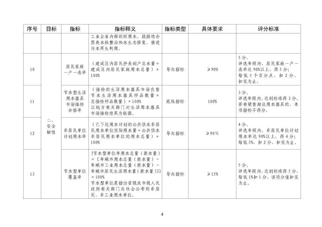 《办法》提出,国家节水型城市申报与评选管理遵循自愿申报、动态管理和复查的原则。申报主体为设市城市(含直辖市的区)人民政府,评选区域范围为设市城市(含直辖市的区)本级行政区域。《办法》明确了申报城市应具备的条件,并修订了国家节水型城市评选标准,新标准涉及20项指标。《办法》要求申报城市近3年内(申报当年及前两年自然年内,下同)未发生城市节水、重大安全、污染、破坏生态环境、破坏历史文化资源等事件,未发生违背城市发展规律的破坏性“建设”等行为,未被省级以上人民政府或住房和城乡建设主管部门通报批评。